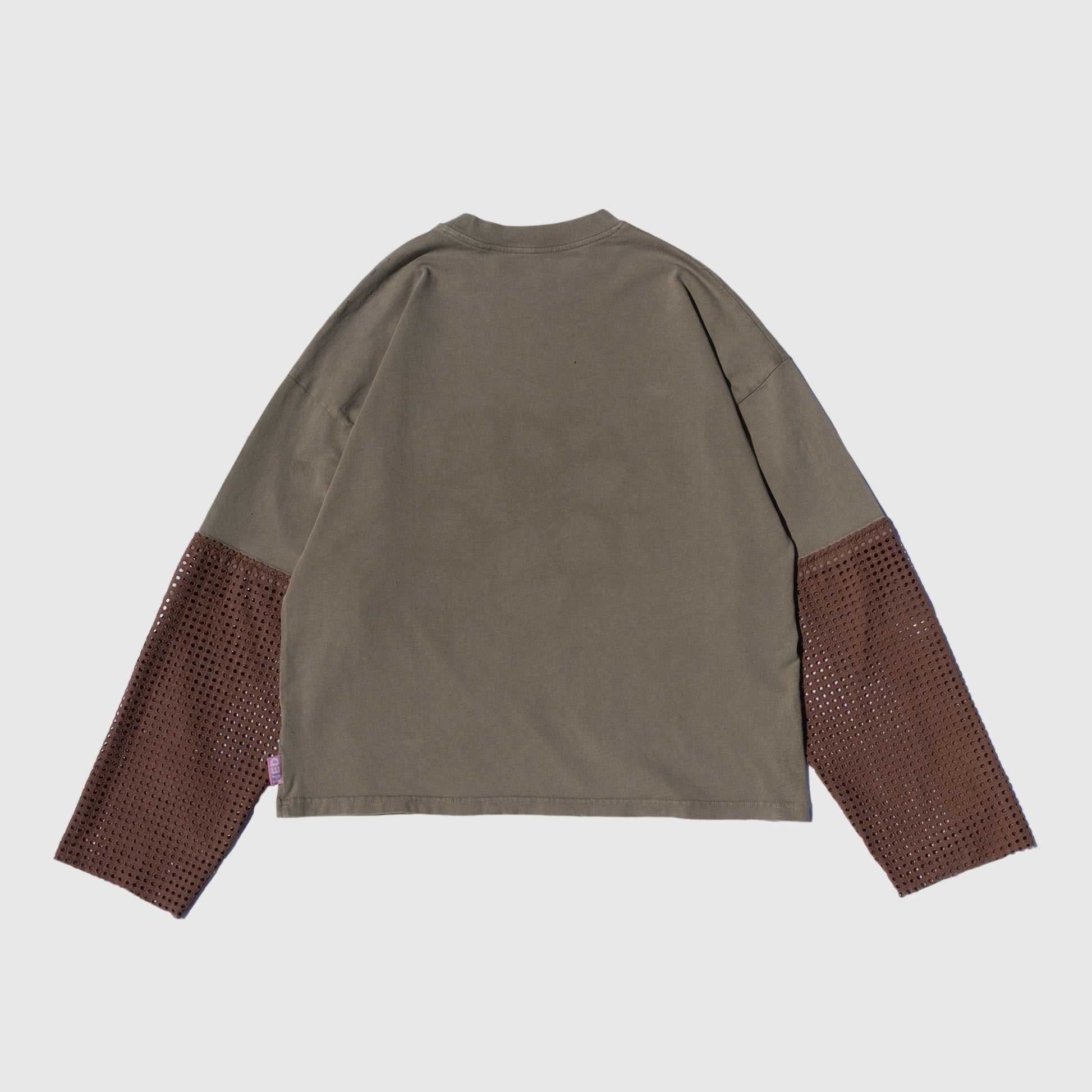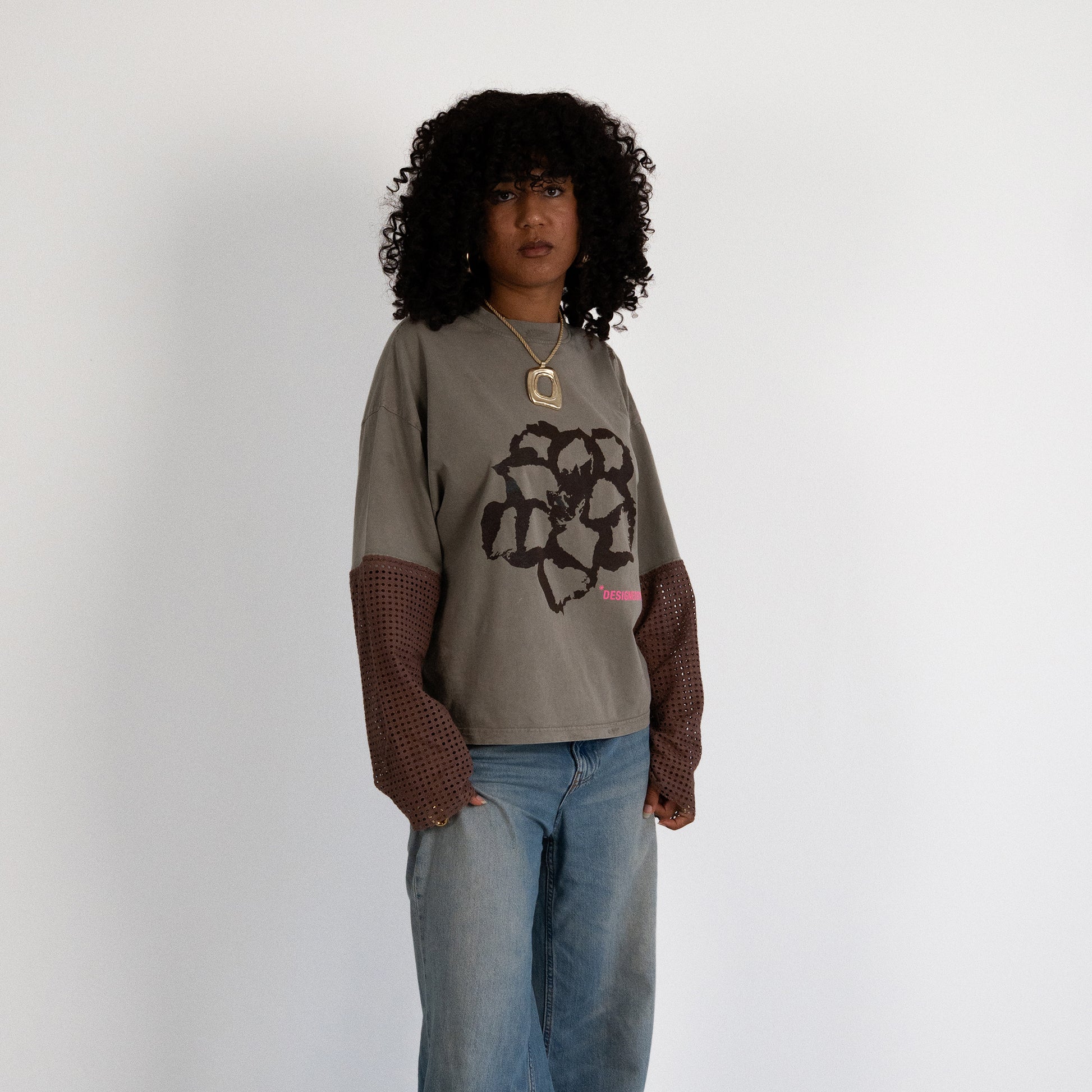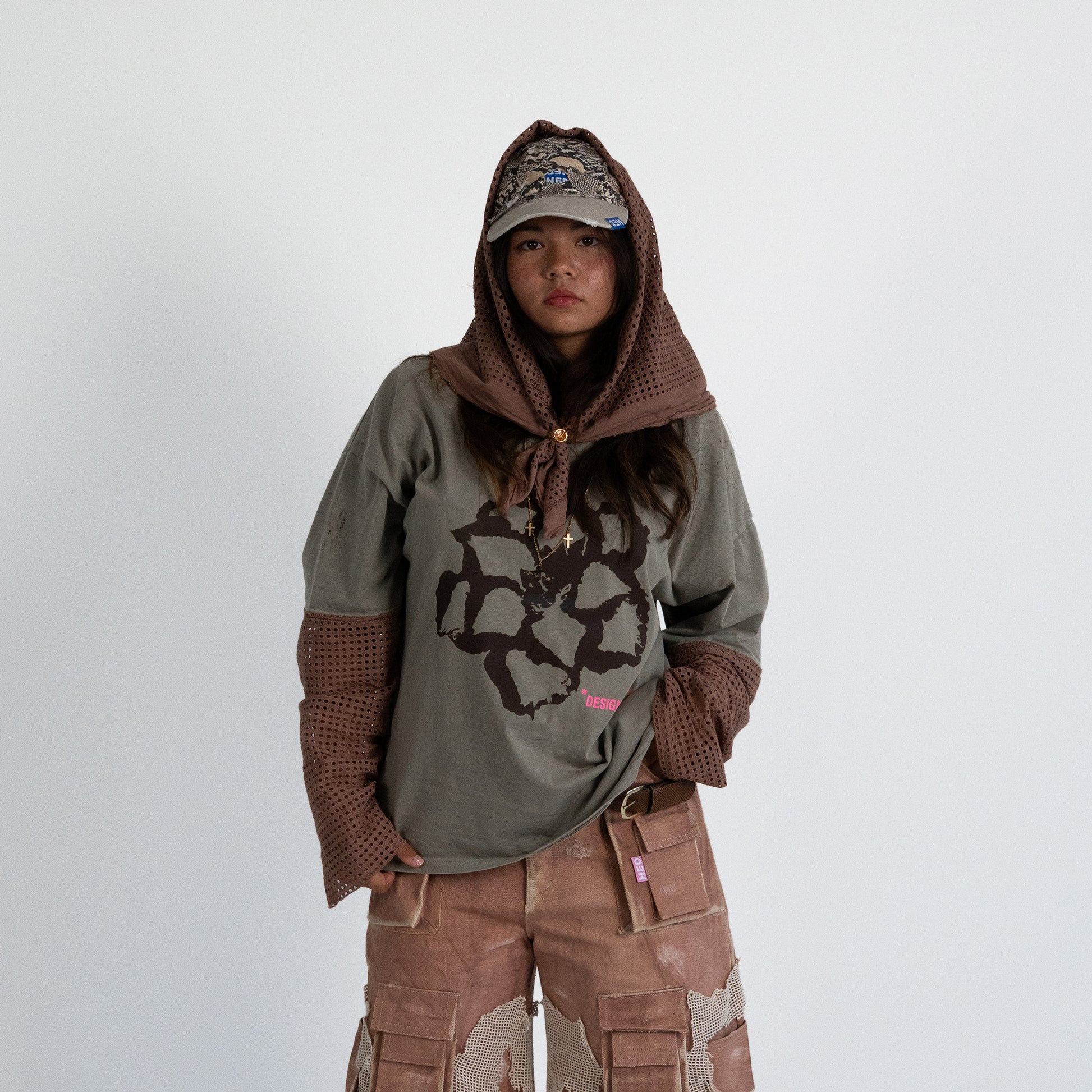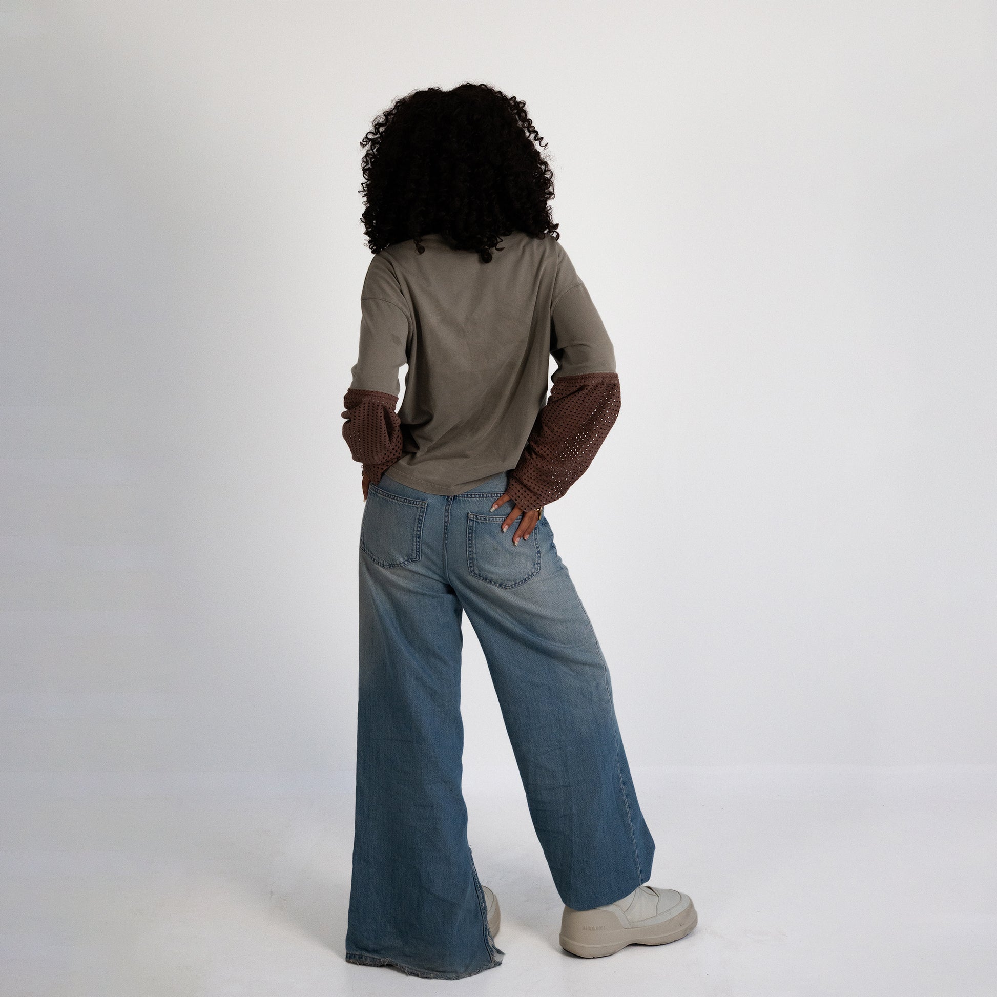 This piece is constructed with distressing and raw edges. Further destruction is not only to be expected, but much more intentional. Sleeves will Fade upon first wash and naturally over time.